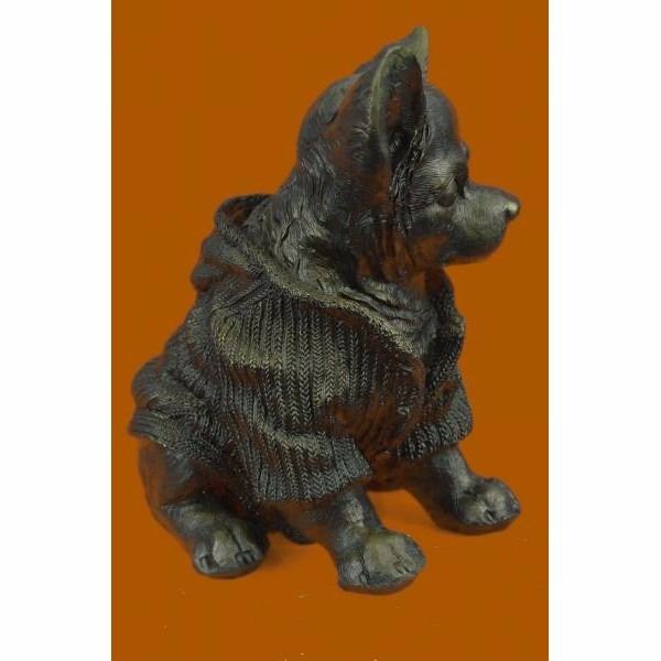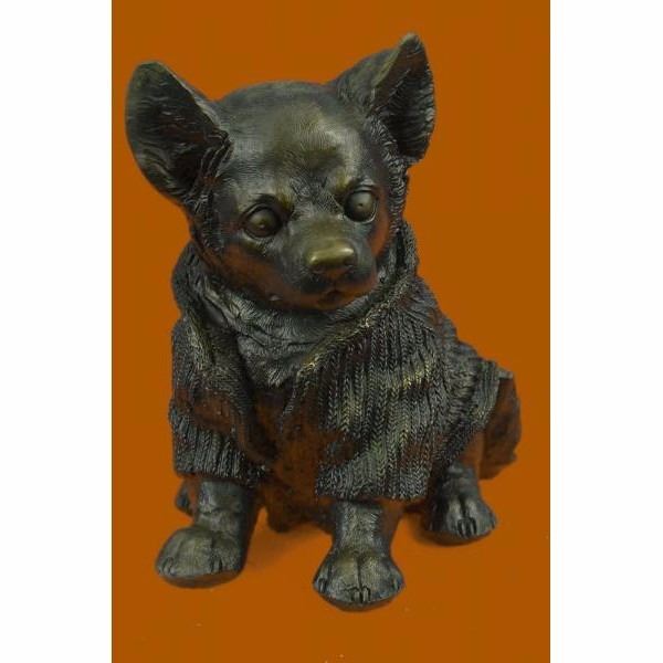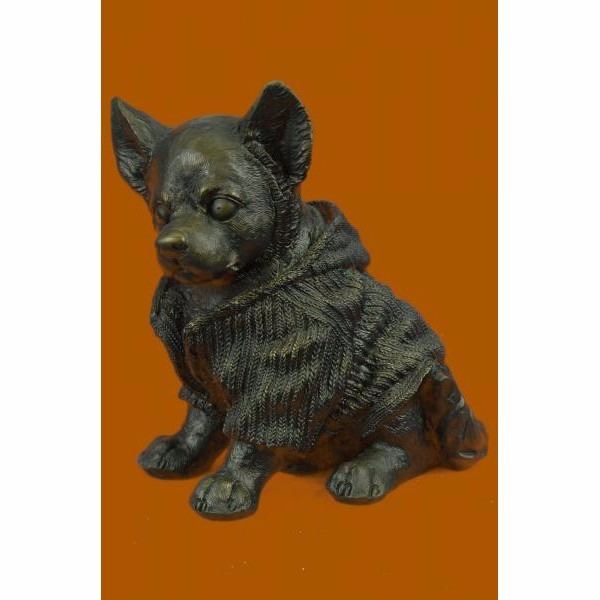 Graceful Chihuahua in hoodie , Bronze Sculpture, by Portuguese artist Milo. This bronze sculpture was produced using the Lost Wax casting method. The Lost Wax Cast method is the most precise metal casting technique in existence, ensuring exquisite detail of the original host model which is usually sculpted in clay or wax. This Lost Wax casting method is an extremely labor intensive and expensive process, but the end results produce a Heirloom Quality Masterpiece! Condition : This sculpture is in perfect condition. Bronze Dimensions :Height 9" x Width 8" Weight : 10 LBS