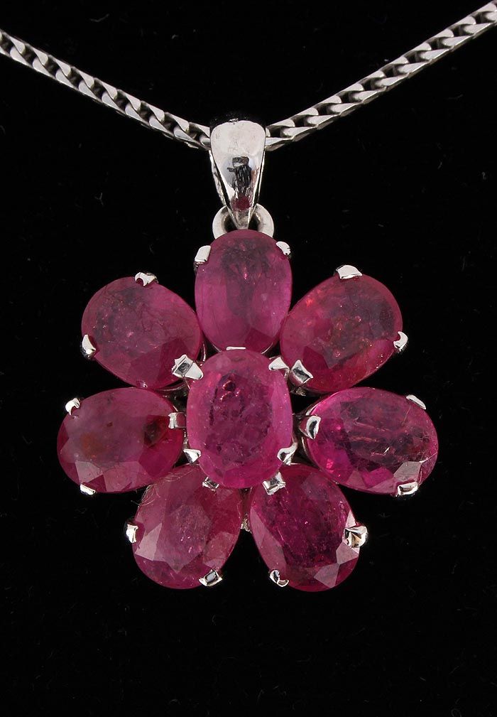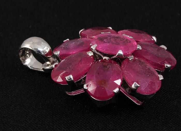 Cute Flower 2.93g Sterling Silver Ruby Pendant 12.00ctw **|**|** Natural Ruby Corrundum Gemstone 8pcs Oval 8x6mm in Silver Pendant; Size: 1.18x0.88 inches ; MSRP: $300
