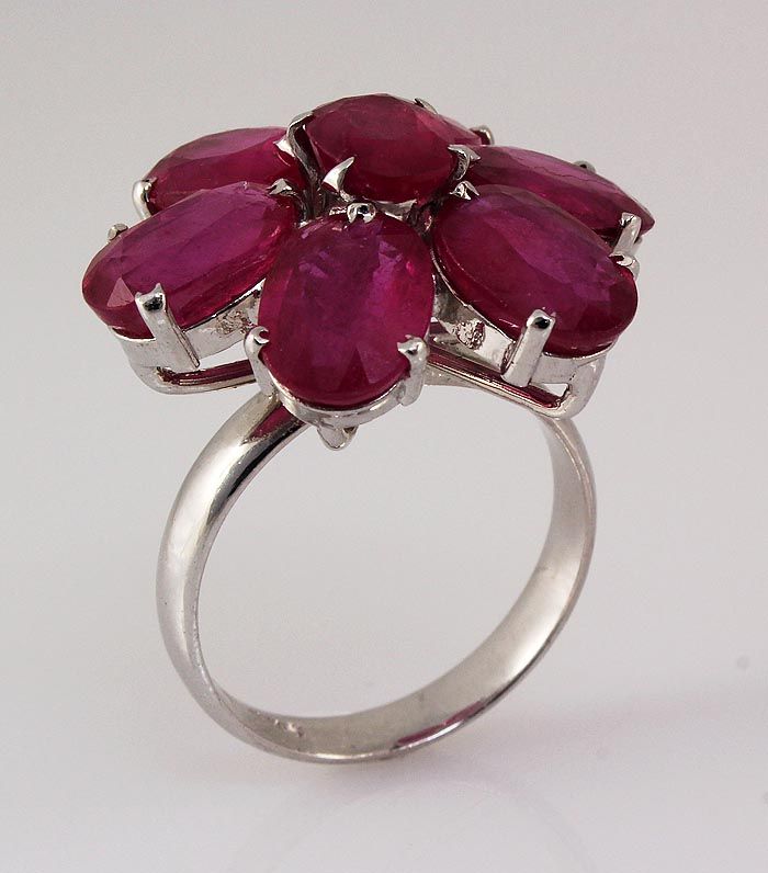 Cute Flower 4.31g Sterling Silver Ruby Ring 14.70ctw **|**|** Natural Ruby Corrundum Gemstone 1pc Oval 8x6mm & 6pcs Oval 9x7mm in Silver Ring; Size: 7.5 ; MSRP: $1100