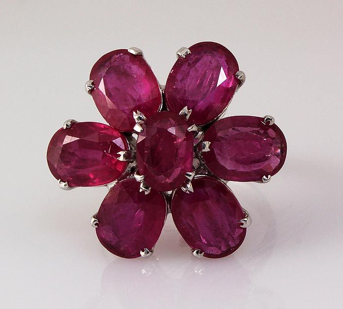 Cute Flower 4.31g Sterling Silver Ruby Ring 14.70ctw **|**|** Natural Ruby Corrundum Gemstone 1pc Oval 8x6mm & 6pcs Oval 9x7mm in Silver Ring; Size: 7.5 ; MSRP: $1100