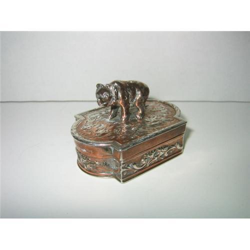 <tr><td>Title:Cute Silver Box with on the top a Bear gold</td></tr>