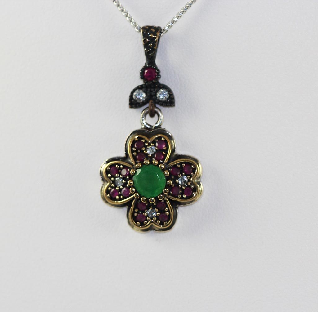 Cute Turkish Jewelry Design Multi Stone Flower Pendant, **|**|** 6.50g Cute Turkish Jewelry Design Multi Gemstones Pendant ; MSRP: $200
