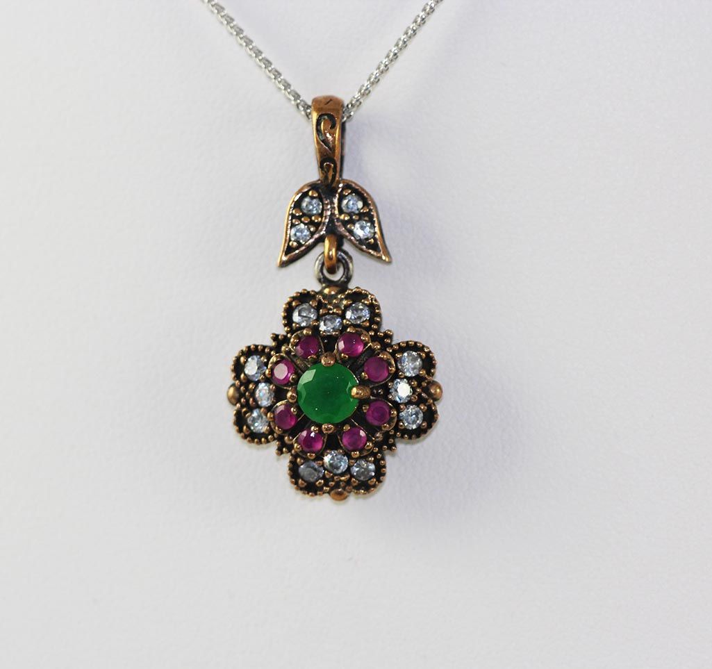 Cute Turkish Jewelry Design Multi Stone Flower Pendant, **|**|** 4.60g Cute Turkish Jewelry Design Multi Gemstones Pendant ; MSRP: $200