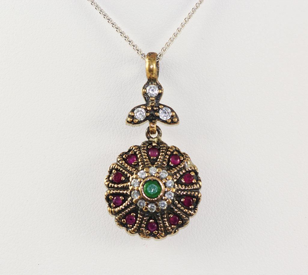 Cute Turkish Jewelry Design Multi Stone Round Pendant, **|**|** 5.70g Cute Turkish Jewelry Design Multi Gemstones Pendant ; MSRP: $200