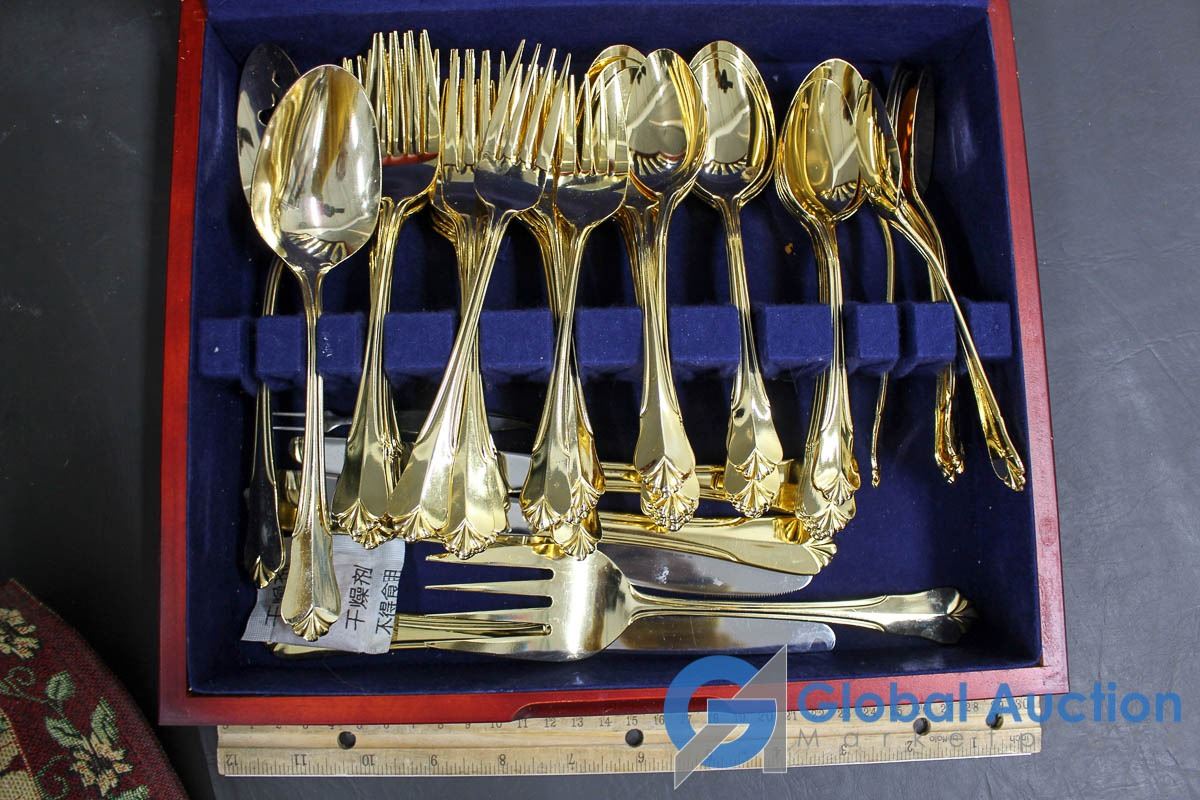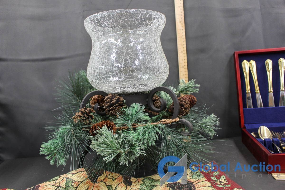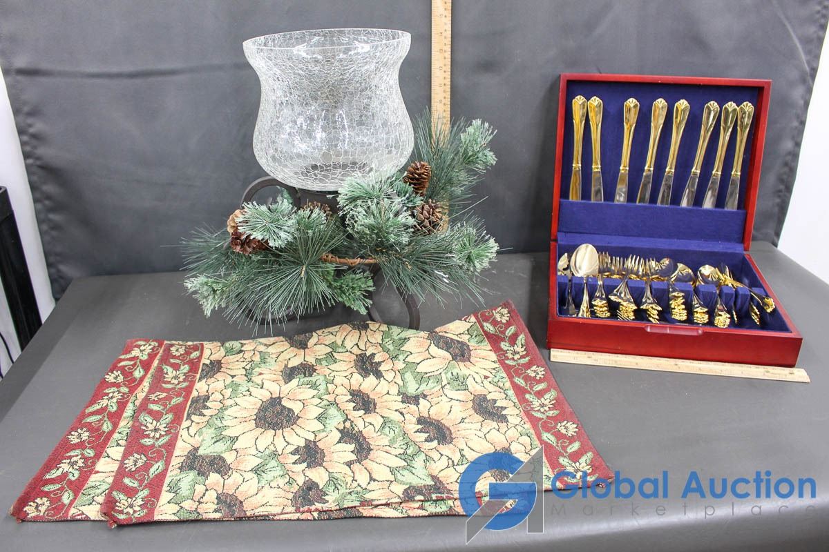 Cutlery 12 Pc. Setting, Christmas Center Piece, and (2) Placemats