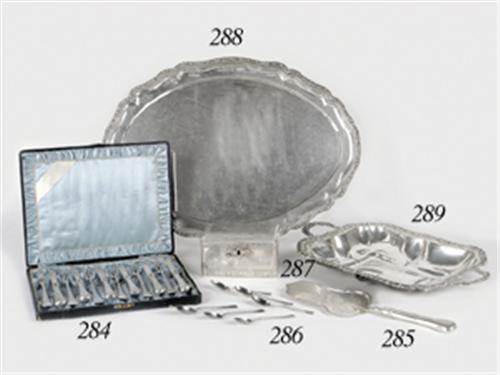 Silver, cut English terminal, two pronged forks, silver blades, circa 1930, Diana mark, weight: 283.0 g.