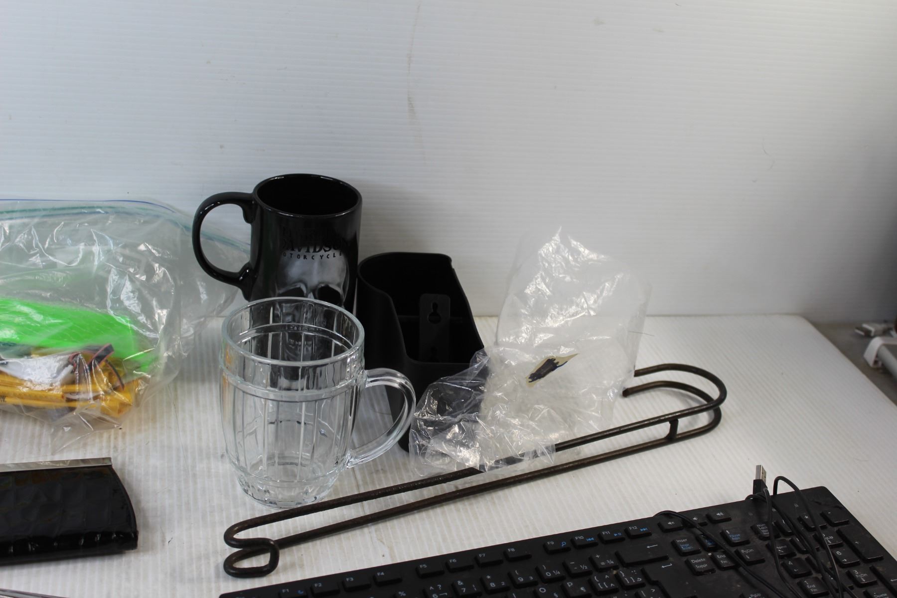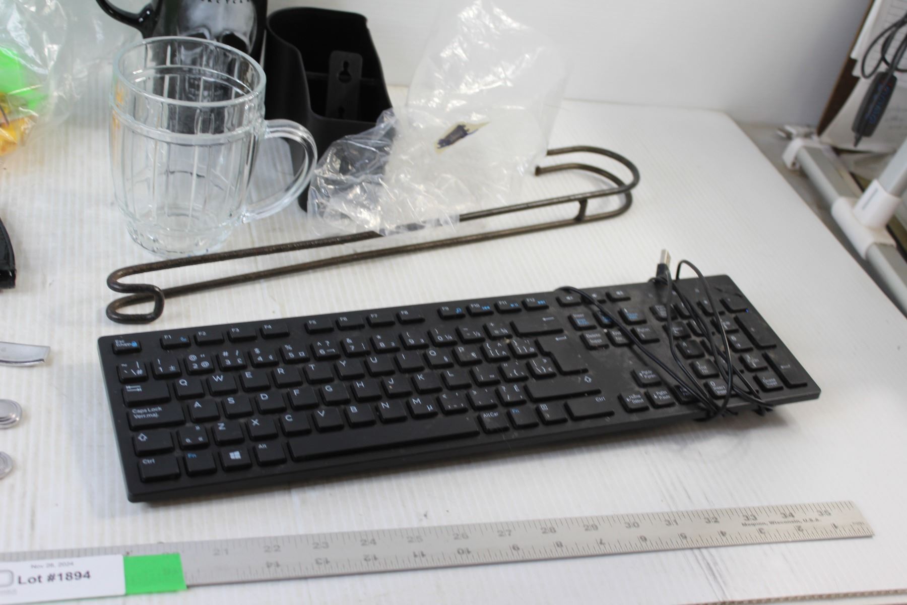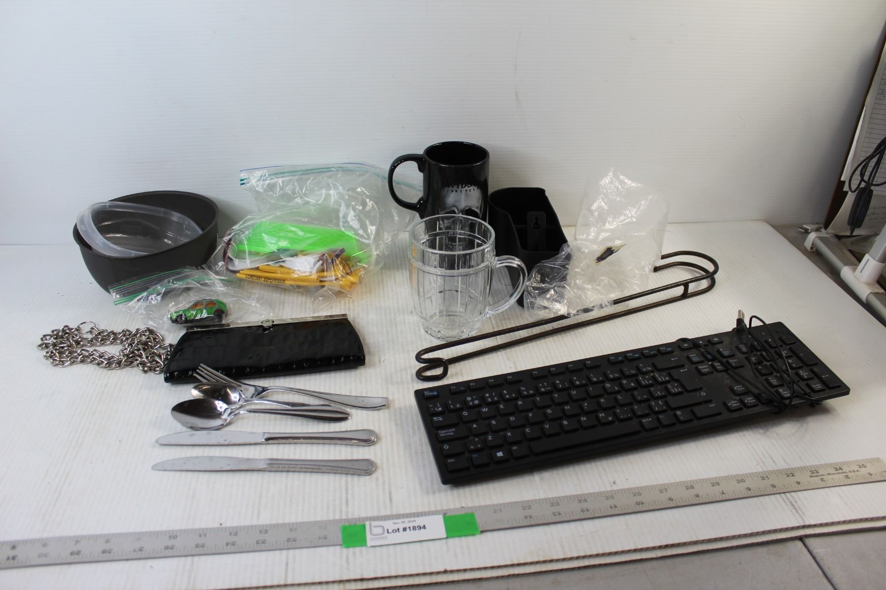 Cutlery, (2) Mugs, Keyboard - Tested Works, Misc.