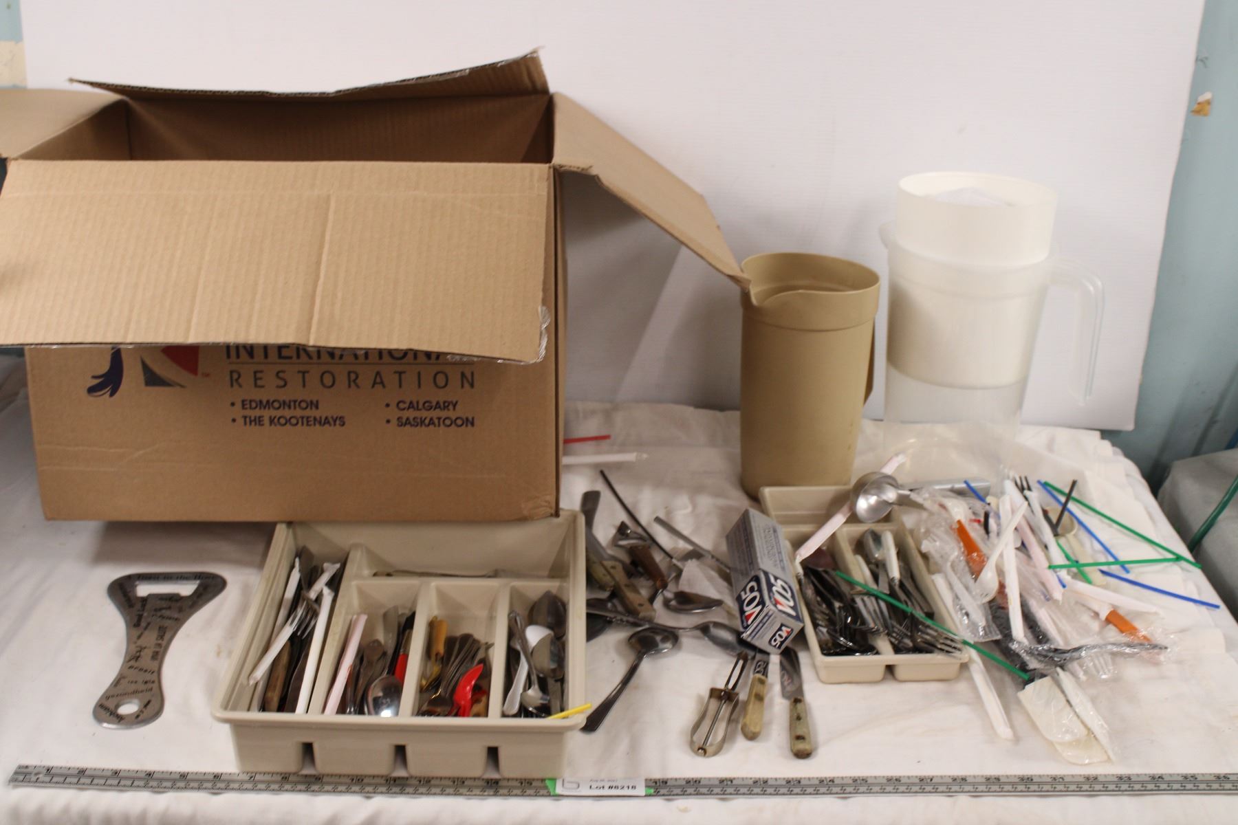 Cutlery, large bottle opener + misc