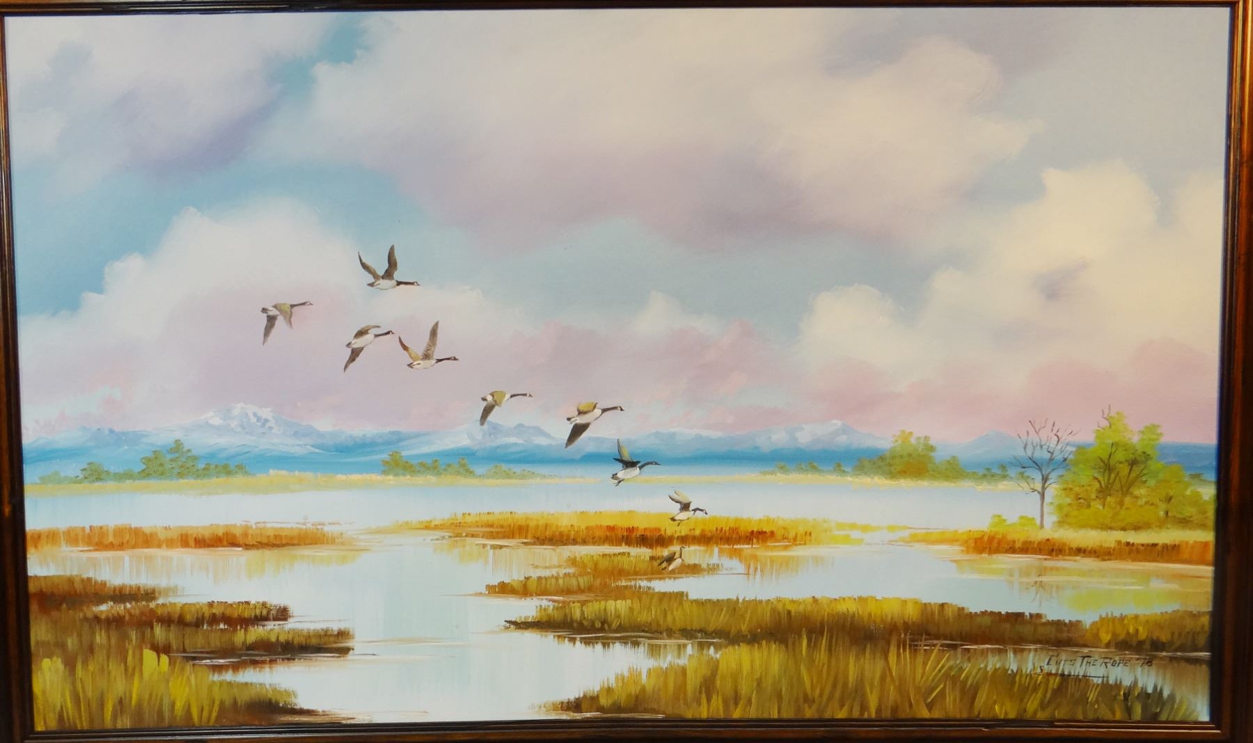 Cuts The Rope, Clarence, oil on canvas, Canadas Landing, 24" h x 40" w, 1978, signed lower right, framed, excellent piece