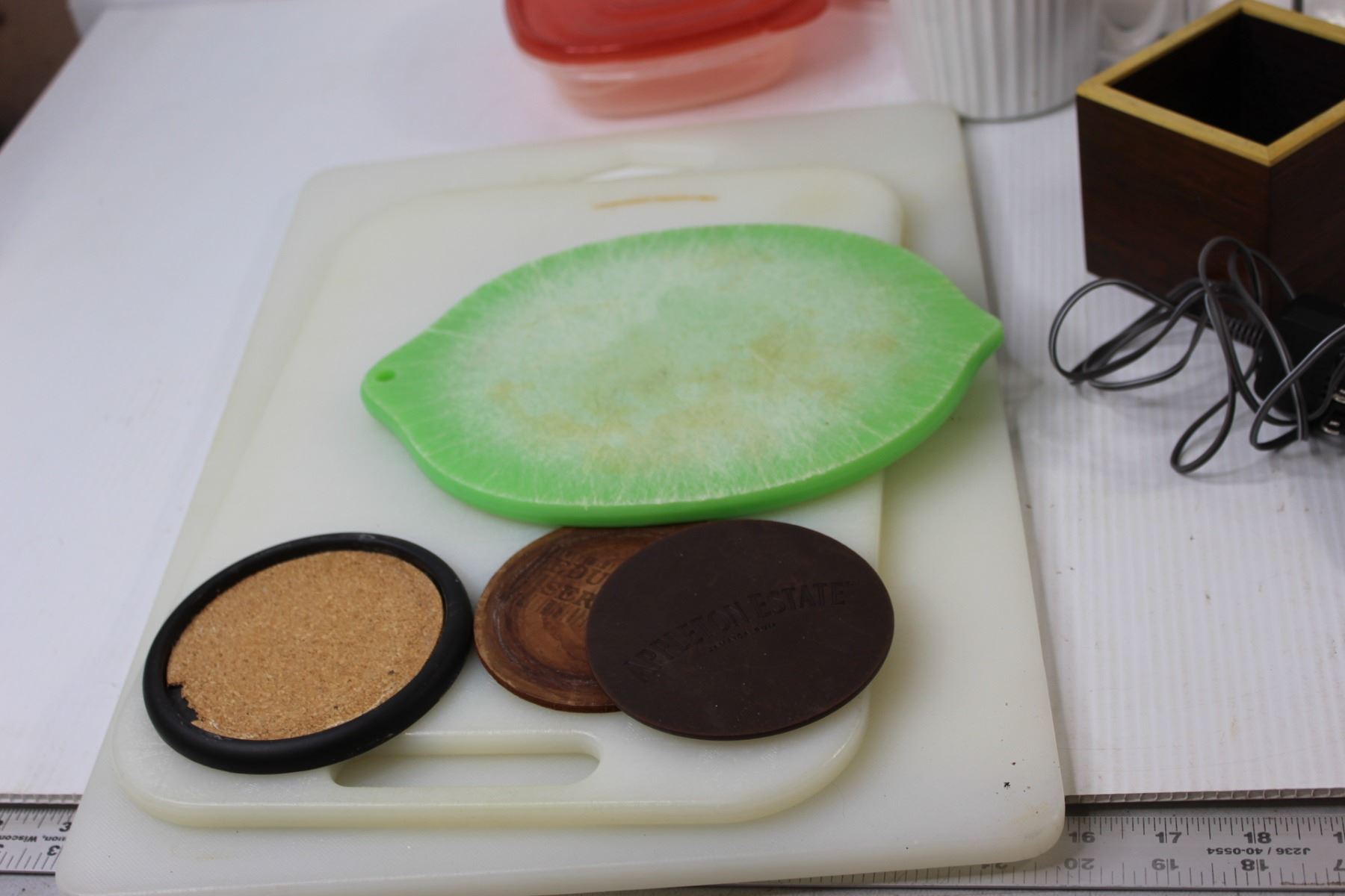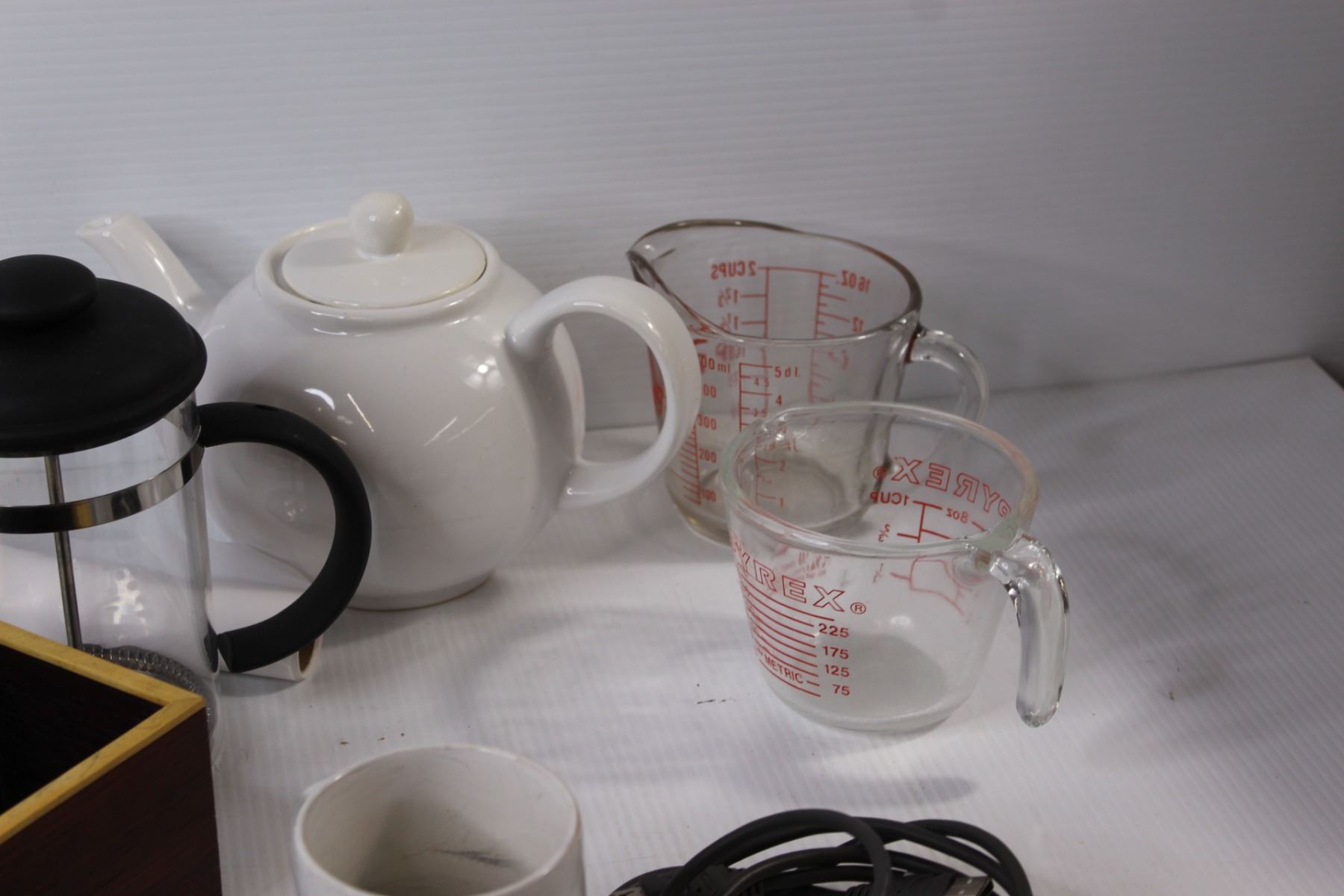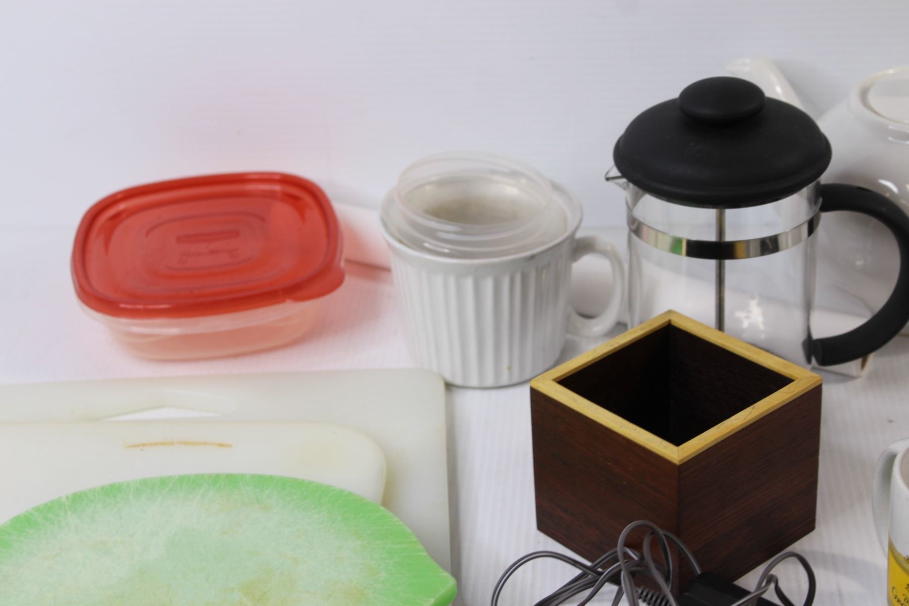 Cutting Boards, Measuring Cups, Tea Pot, Container, Coffee Percolator, Misc.