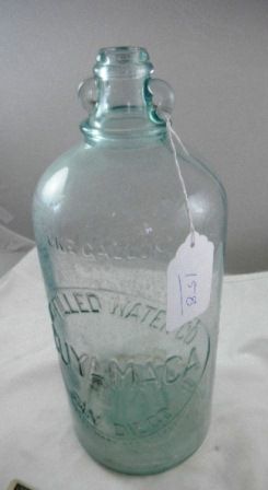 Cuyamacha Water bottle from San Diego County California. Age approximately 1920. This is a one gallon glass bottle is aqua color and 14 inches tall. Shipping 20.00. Some staining inside