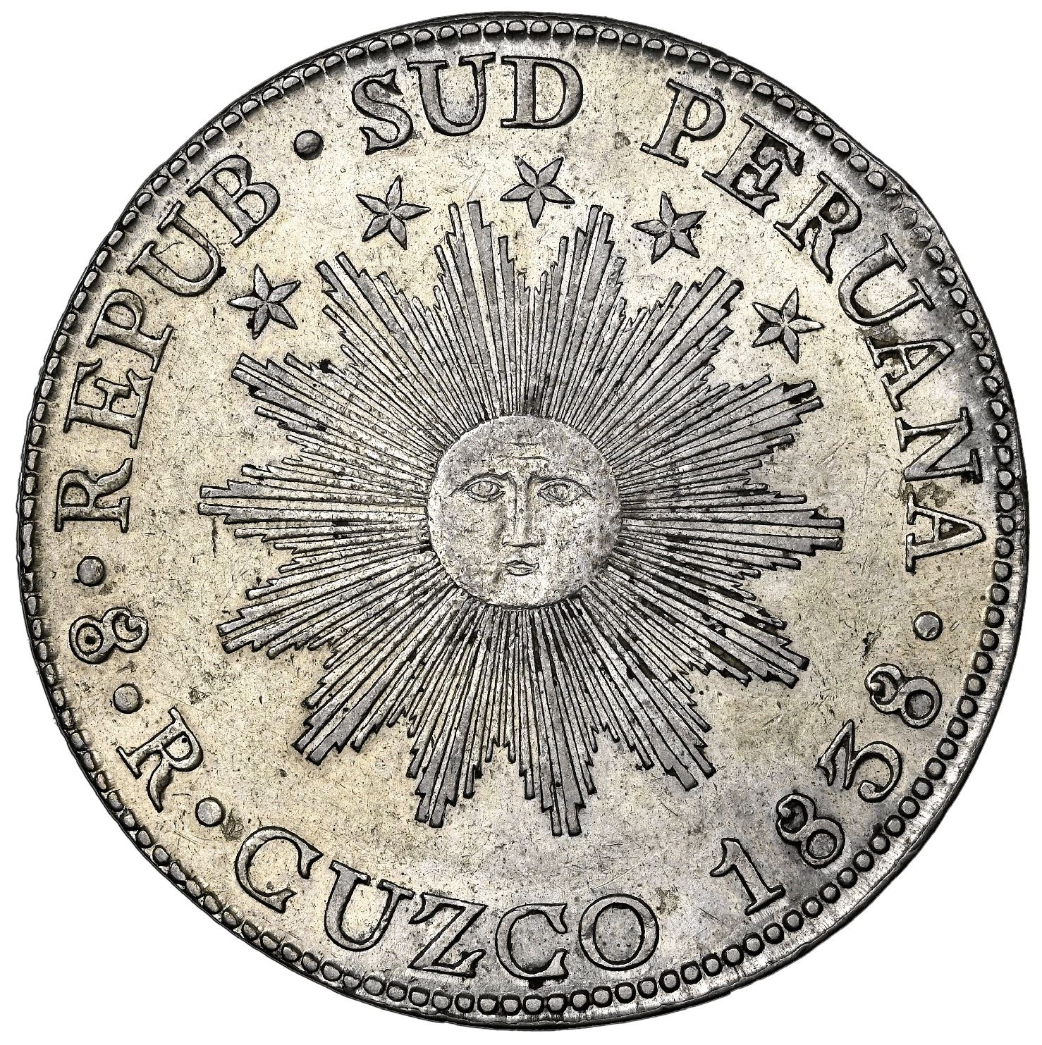Cuzco, Peru (Republic of South Peru), 8 reales, 1838 BA, CONFEDERACION, NGC AU 53.