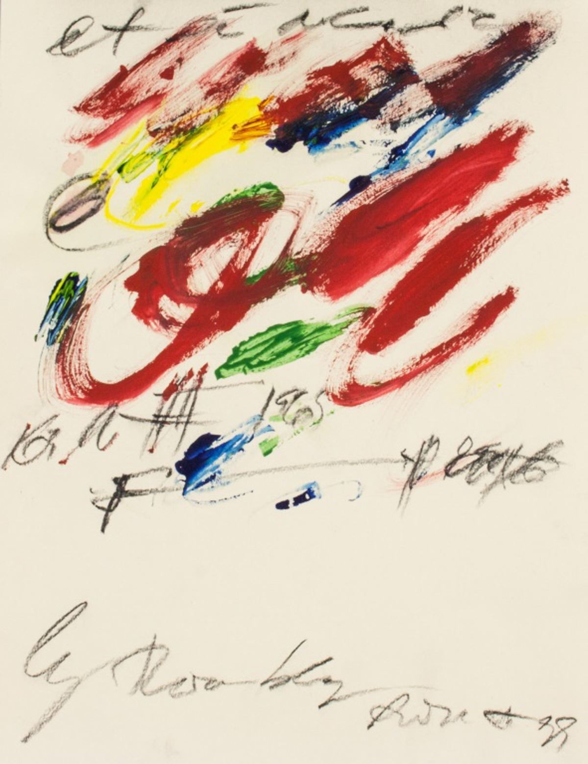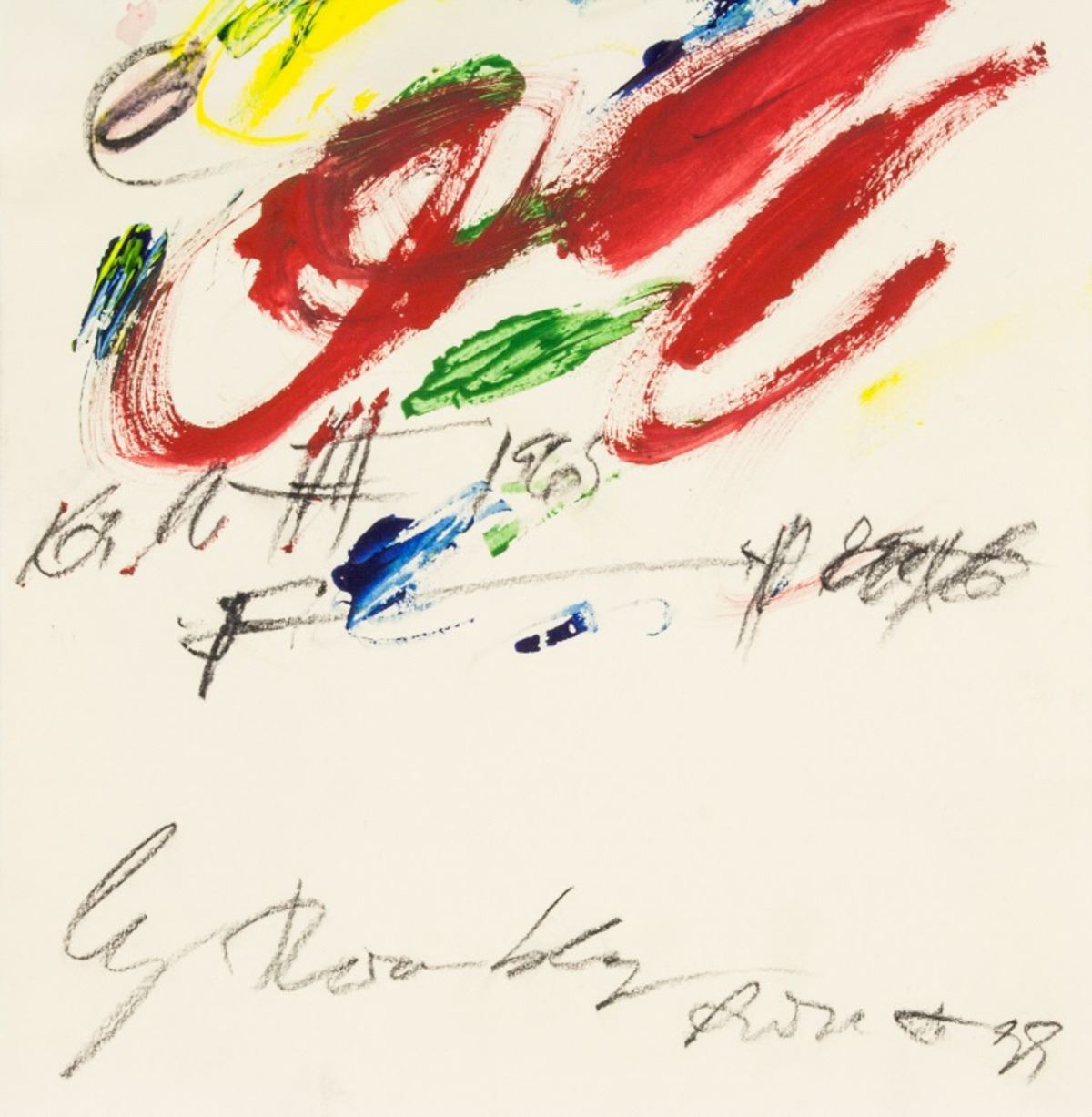 Acrylic on paper. Featuring abstract composition. Signed Cy Twombly near lower edge. Attributed to Cy Twombly (1928-2011, American). 11 x 8.5 inches. PROVENANCE: This item has limited provenance from an upper New York estate
