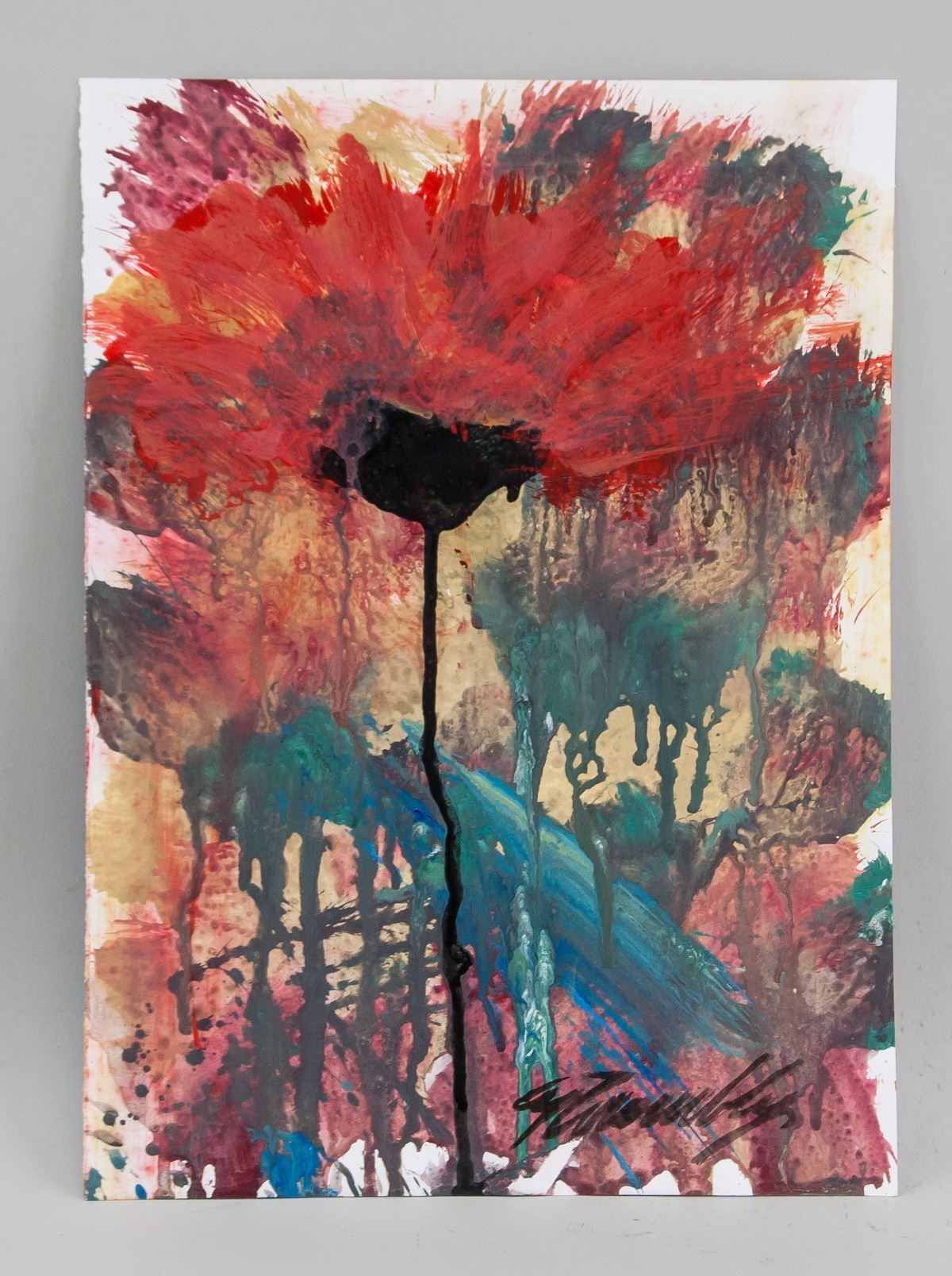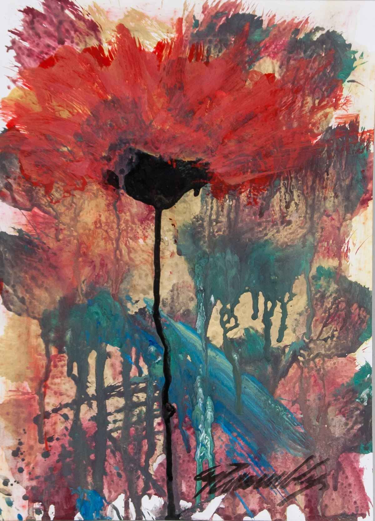 Acrylic on paper. Featuring an abstract expressionist composition. Stamped CHIRICO / margutta 44 / ROMA on verso. Attributed to Cy Twombly (1928-2011, American). 33 x 24 cm (13.0 x 9.5 inches)