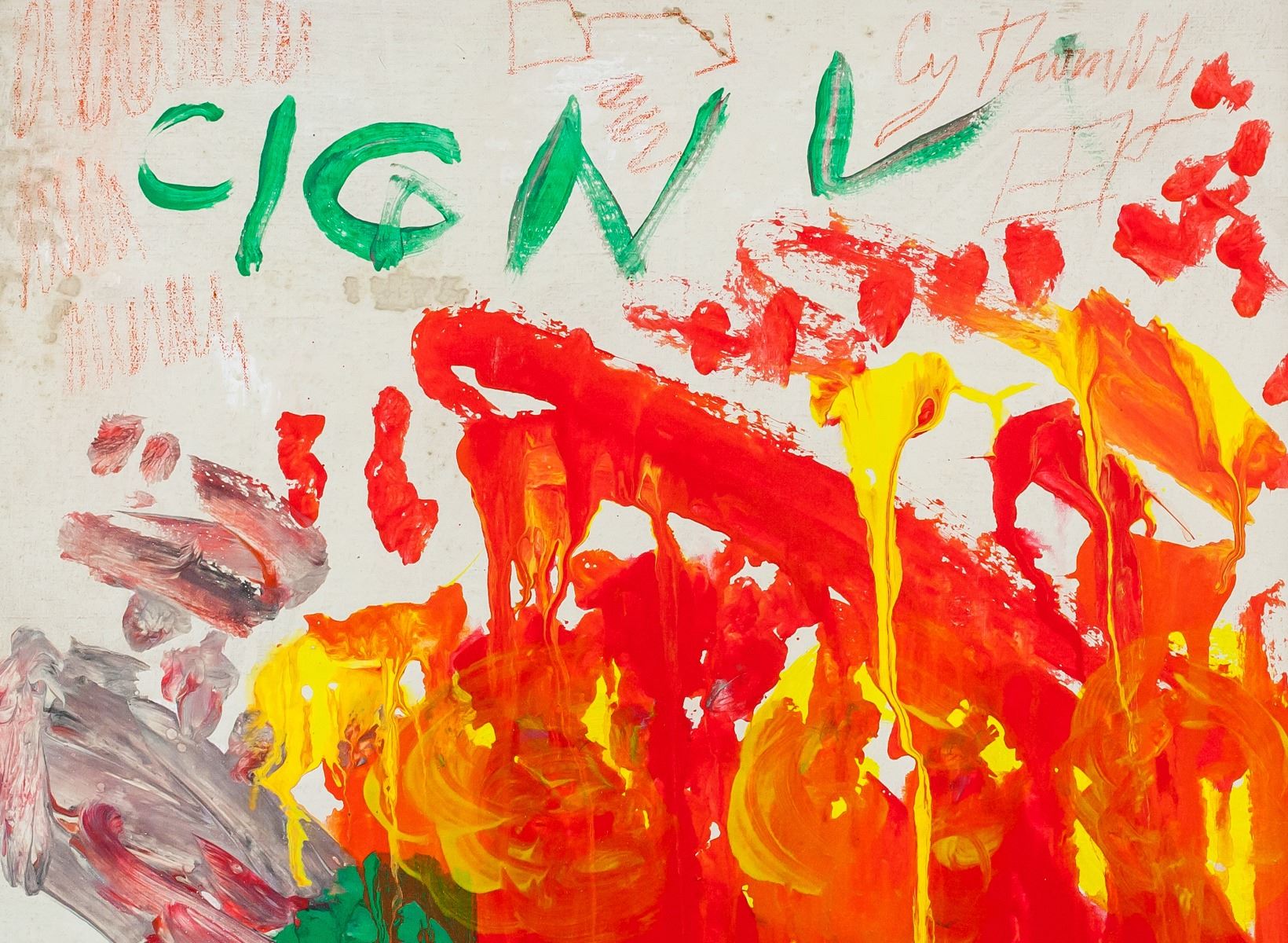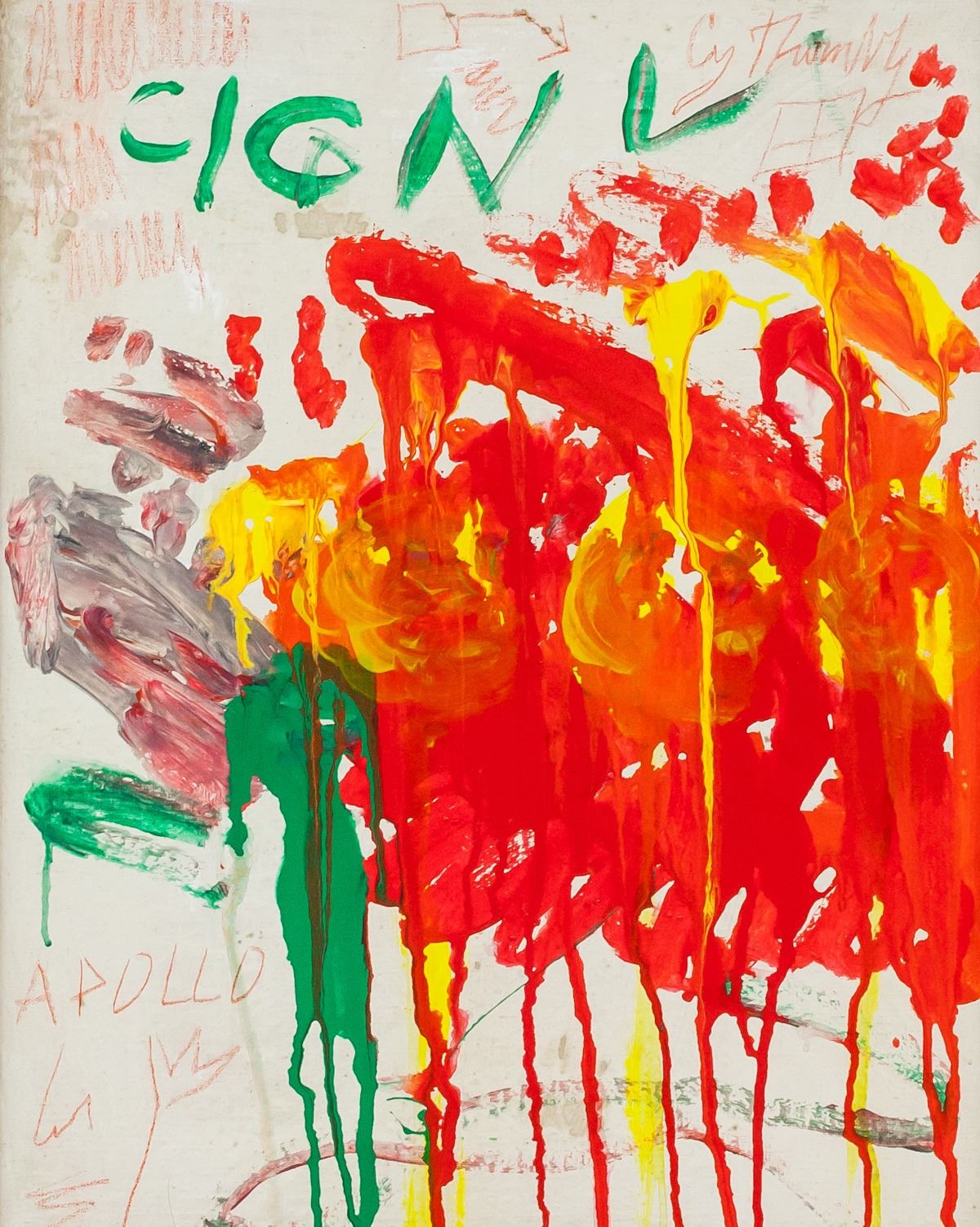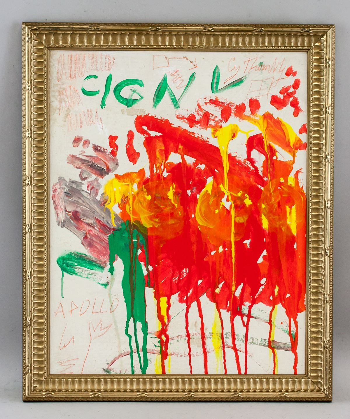 Oil on canvas, framed. Featuring an abstract expressionist composition. Signed Cy Twombly on the upper right corner. Attributed to Cy Twombly (1928-2011, American). 50.5 x 40.5 cm (19.75 x 16 inches). Framed size: 58 x 48 cm (22.75 x 18.75 inches). PROVENANCE: This lot carries limited provenance from a Southern Ontario estate