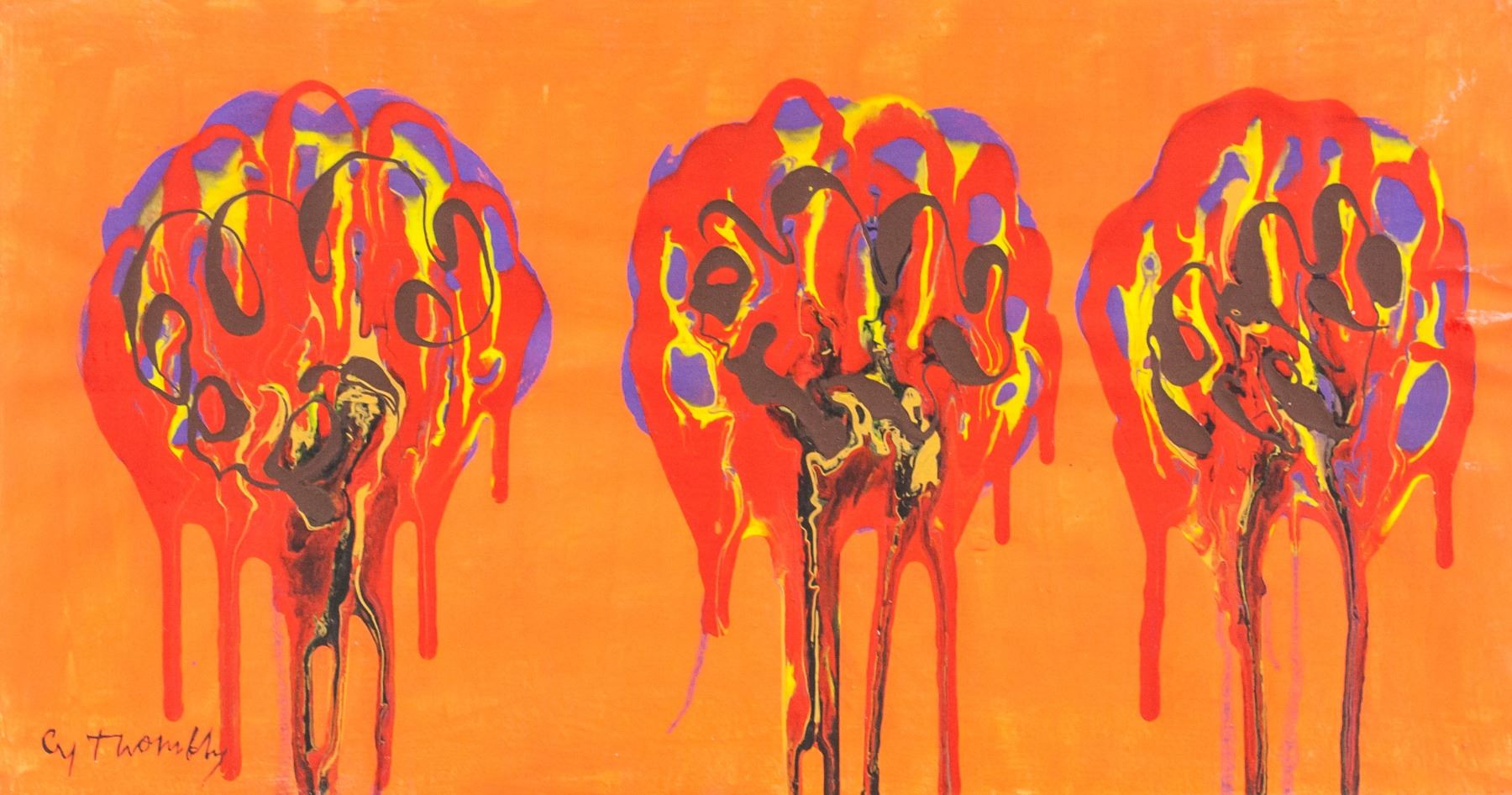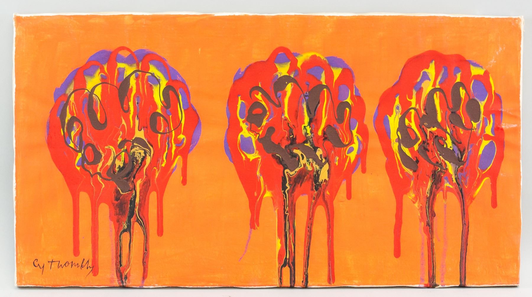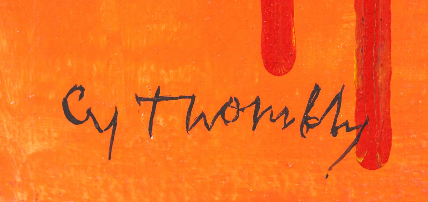 Oil on canvas. Featuring abstract composition of dripping paint. Signed "Cy Twombly" to the bottom left corner. Attributed to Cy Twombly (1928-2011, American). 31.5 x 59.5 cm (12.5 x 23.25 in).