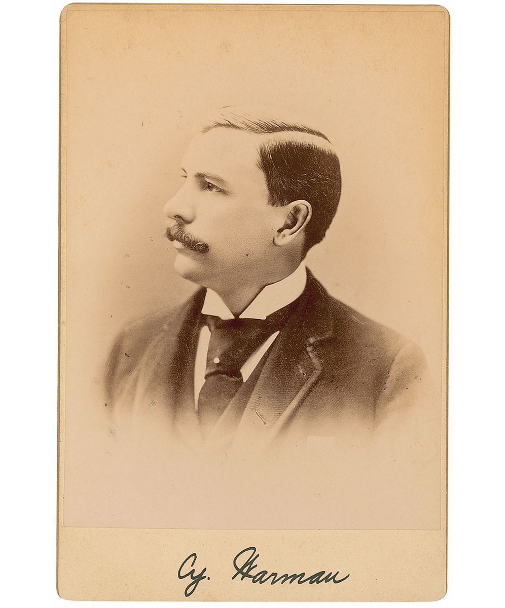 Journalist and author (1855–1914) who published stories of railroads and their operations. Original 4 x 6.5 cabinet photo by an anonymous studio, signed in the lower border in black ink. In fine condition.