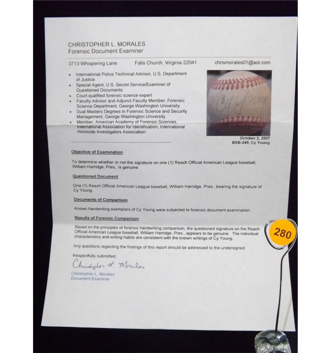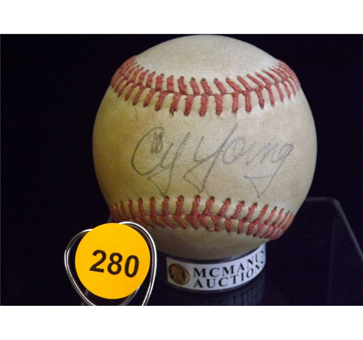 Cy Young Autographed Baseball. Reach Official ALB. Appraised or estimated retail value $14000. COA by Christopher Morales. All Sales Final. Please see terms and conditions of auction.