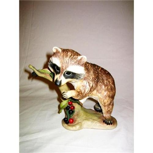 Cute little Racoon seating on a tree and eating berry,good condition signed