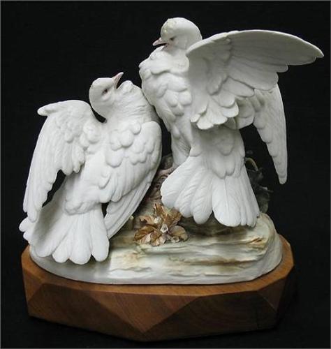 Cybis double figurine of doves; signed on bottom front and numbered 106; mid to late 20th C.; measures 10 1/2" high x 12" x 7 1/2" (no visible defects)