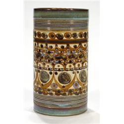 Cylindrical Denby vase, hand painted with …