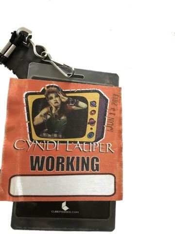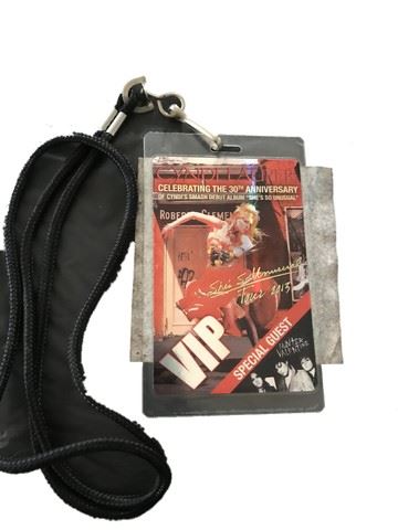 Cyndi Lauper concert all access passes (4"x3"). One is cloth with an adhesive backing and the other is laminated.