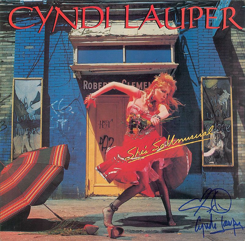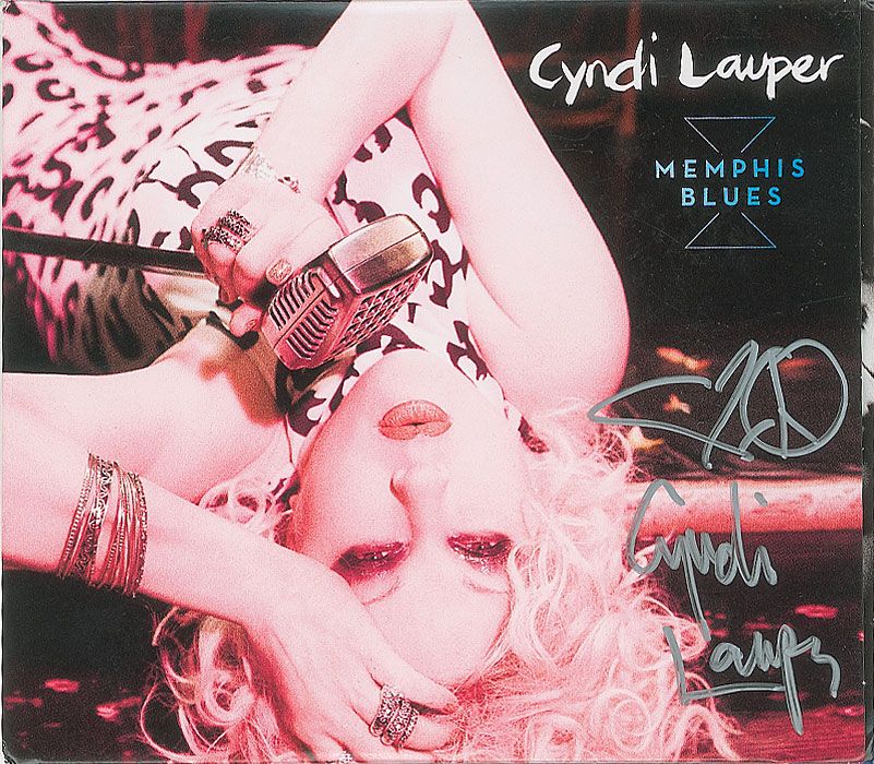 She’s So Unusual album, signed on the front cover in blue felt tip, with Lauper adding a small heart and peace sign; and a Memphis Blues CD, signed on the front cover in silver ink, with Lauper again adding a heart and peace sign. Both the album and CD ar