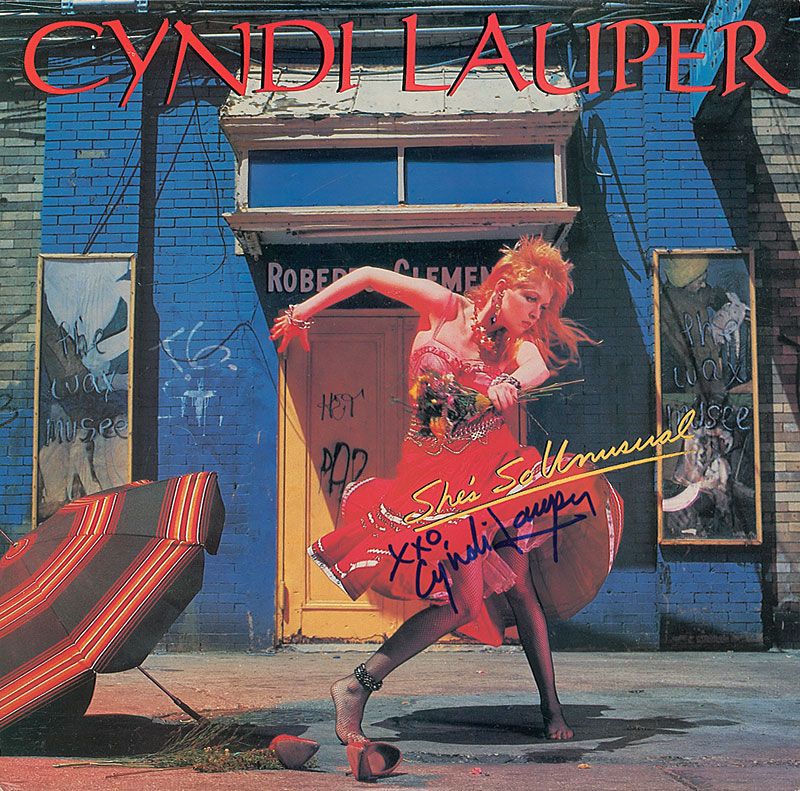 She’s So Unusual album signed in person on the front cover in blue felt tip. In fine condition. The record is included. Originally obtained by in-person specialist Mike Wehrmann.