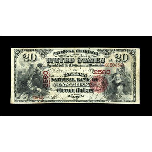 <B>Cynthiana, KY</B></I> - $20 1875 Fr. 435 <B>The Farmers NB</B></I> Ch. # 2560<BR>A very rare Kentucky type and denomination, with the census showing only a dozen and a half Series 1875 Twenties from all Kentucky banks combined. This is the only specimen extant from Cynthiana. Bright <B>Very Fine,</B></I> another winner from the Gale holdings.