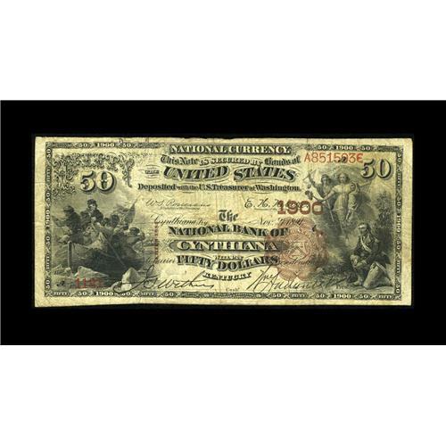 <B>Cynthiana, KY</B></I> - $50 1882 Brown Back Fr. 513 <B>The NB of Cynthiana</B></I> Ch. # 1900<BR>A very rare type and denomination from Kentucky, with this one of just nine $50 Brown Backs listed in the census from the entire state. Pen signed <B>Fine,</B></I> ex-Martin collection, and a real winner of a note.