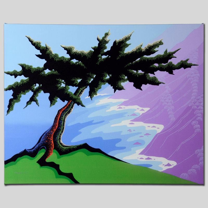 Larissa Holt, a student of distinguished artist Eyvind Earle(1916-2000), uses bold colors and breathtaking scenery to create images of Nature in her own unique style. "Cypress Point" is a limited edition giclee on stretched canvas by Holt, numbered and bearing Holt's authorized signature. This piece comes gallery wrapped. Includes Certificate of Authenticity! Measures approx. 27" x 21.5" x 1.5" (image).