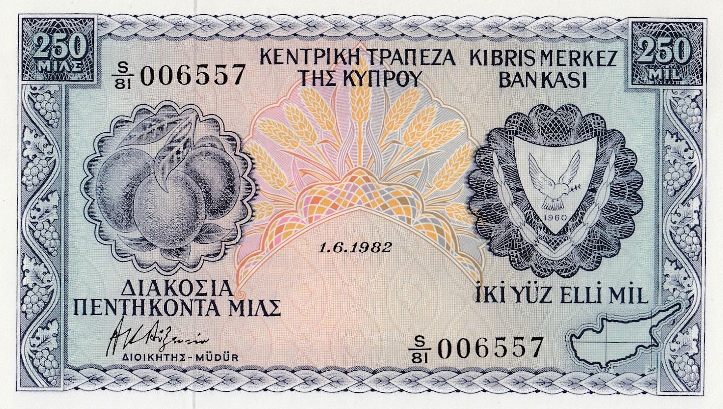 Cyprus, 250 Mils, 1982, UNC, p41cbr/serial number: S/81 000557