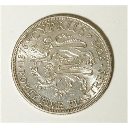 Cyprus George V 45 Piastres 1928, KM19, lustrous