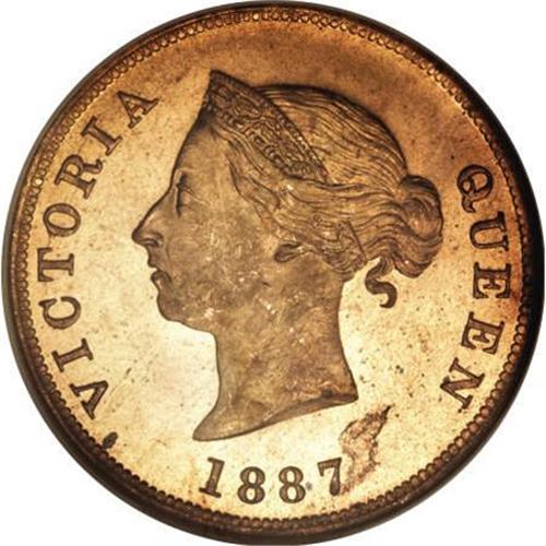 <B>Victoria 1/2 Piastre 1887,</B></I> KM2, MS64 RED Prooflike NGC, full original mint brilliance with a frosted cheek on the Queen, small spot on the reverse rim at 12 o'clock.<BR><BR><b>Shipping:</b> Coins & Currency (<a target="_blank" href="http://www.heritageauctions.com/common/shipping.php">view shipping information</a>)