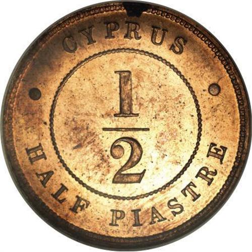 Cyprus Victoria 1/2 Piastre 1887, KM2, MS64 RED