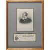 Inventor and businessman (1809–1884) whose reaper revolutionized American agriculture. Bank check, 7.75 x 2.5, filled out in another hand and signed by McCormick, “C. H. McCormick,” payable to Mrs. Van Auken for $25, May 7, 1867. Double-matted and framed with an engraved portrait to an overall size of 13.5 x 17.5. In very good condition, with multiple vertical folds, cancellation cuts to the payee area, and show-through from writing to reverse.