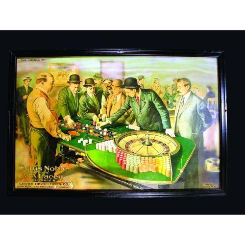 Cyrus Noble and W.A. Lacey Whiskey Paper Sign. Crown Distilleries Co.1910. Entitled The Double O. Mounted on board, some restoration and tears otherwise good condition. 43 X 28 1/2 overall.