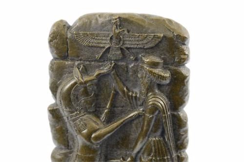 This Is A Wall Relief Of Darius I Known As Darius The Great (550BC-486 BC). This Sculpture Was Cast Using The Archaic Lost-Was Methods And Finished With A Brown Patina Stain. It’s mounted upon a Black Marble Base With. Bronze Dimensions: Height 8 X Width 4 inches. Weight: 4 Lbs.