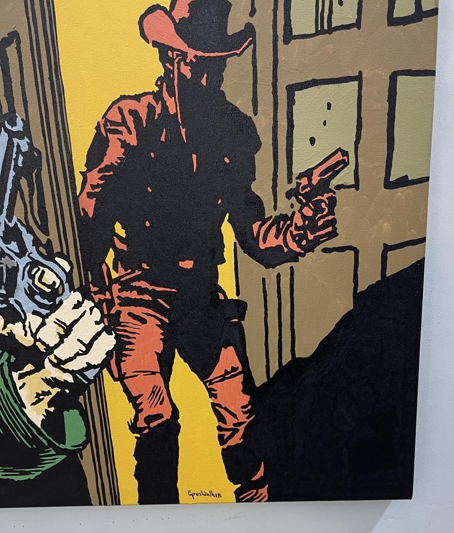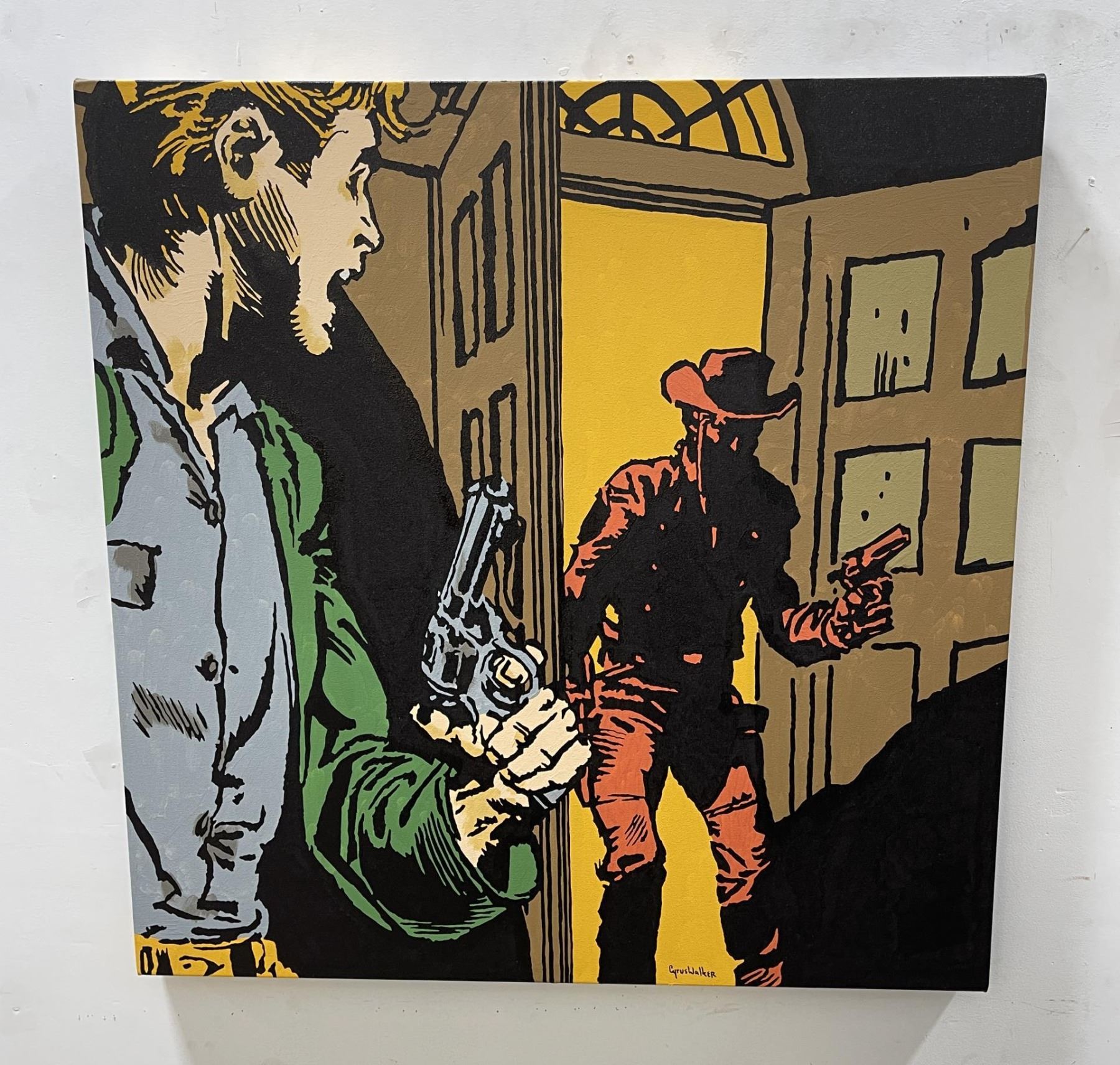 Title of the work is "Uninvited". Measures 36" by 36". Oil on Canvas. Here at Davis Brothers Auction we take active efforts to support Montana Artists. We work hard to bring you artists we consider to be modern masters of their craft. "Honestly, I make my paintings because they allow me to continue to explore a style that interests me. Western themes are interesting to me because they have a bit of mystery to them. The Romans created work in the likeness of their gods. The lingering icons of the American West are a sort of deity to me. The ideas of the romantic west are continually stripped away in modern times, but the pieces that remain are dipped in the purest of gold. I am a proctor, panning in the river of my mind to unearth my gold. It seems cruel to force a person who is best suited by visual communication to write about the very ideas that he can not describe." - Cyrus 2022 - Best Of The West Show - Great Falls , MT 2022 - Standard Gallery - Steamboat, CO 2021 - Echo Arts - Bozeman, MT 2021 - Gallery Artist - Art Focus - Hamilton, MT 2021 - Solo Show - Dick Idol Signature Gallery - Whitefish, MT 2021 - Solo Show - Courtney Collins Fine Art - Big Sky, MT 2021 - Out West Art Show - Great Falls, MT BFA - Graphic Design - Montana State University 2020 - Gallery Artist - Diel Gallery - Jackson, WY 2020 - Big Sky Art Council Auction - Big Sky, MT 2019 - Bozeman Stampede - Bozeman, MT 2019 - Big Sky Professional Bull Riders - Big Sky, MT 2019 - Big Sky PBR - Auction - Big Sky, MT 2019 - Shift - Stettie Ruth - Bozeman, MT 2019 - Gallery Artist - True West - Santa Fe, NM 2019 - Gallery Artist - Creighton Block Gallery - Big Sky, MT 2018 - Gallery Artist - Creighton Block Gallery - Big Sky, MT 2018 - Trophy Room - Stapleton Gallery - Billings, MT 2018 - Slow West - Stettie Ruth - Bozeman, MT 2018 - Big Sky Professional Bull Riders - Big Sky, MT 2018 - Miles City Bucking Horse Sale - Miles City, MT 2018 - Livingston Roundup - Livingston MT 2018 - Bozeman Stampede - Bozeman, MT 2018 - New Mexico State Fair - Albuquerque, NM 2018 - Rotating Artist - Sun Dog Fine Art - Bozeman, MT 2018 - Gallery Artist - True West - Santa Fe, NM 2017 - Juried Show - Green Room Gallery - Livingston, MT 2017 - Quick Draw/Auction - Bucking Horse Sale - Miles City, MT 2017 - Light - Walker Gallery, Bozeman - MT 2016 - Juried Show - Helen Copland Gallery - Bozeman, MT 2016 - Mural Installation - Alchemist Brewery - Stowe, VT 2016 - BYOA - Cottonwood Club - Bozeman, MT 2015 - Juried Show - Helen Copland Gallery - Bozeman, MT 2015 - Poster Selection - Yellowstone National Park - Yellowstone, WY
