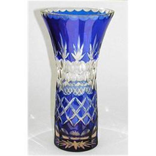 <tr><td>Title:Czech Blue Cut To Clear 8 1/2 in Vase</td></tr>