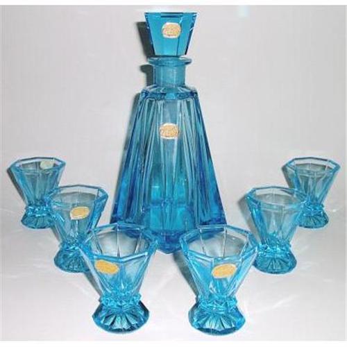 <tr><td>Title:Czech Bohemia Art Glass Blue Decanter Set</td></tr>