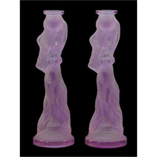 Available for purchase is an OUTSTANDING QUALITY Lalique influenced Pair of Alexandrite Figural Candlesticks!! This Art Deco Pair was made in the Bohemian Region of the Czech Republic and is a CIO WORLDWIDE exclusive. They are completely hand crafted from the finest quality Alexandrite Glass (also referred to as Neodymium) in both the frosted & clear (polished) forms ... true to the Lalique style. Each Candlestick features a Scantily draped Maiden with her arms outstretched above her head holding the Candlestick cup. This exclusive Pair comes complete in a classy, custom made, 2 piece Satin Lined Presentation Box with a ?CIO? brief history Certificate to guarantee their Authenticity. Making this Pair even RARER yet is the fact that CIO has produced them for the FIRST TIME in over 60 years using what are believed to be the ORIGINAL VINTAGE MOLDS. They are created with EVERY detail magnificently mastered ? right down to the facial features and hair which can easily be seen?.. yielding the TRUE masterpiece!! However, due to the skill required and difficulty in producing such an elaborate Pair, they can only be made in VERY, VERY limited quantities. Alexandrite Glass is like a chameleon ... it is a BEAUTIFUL Lavender/Purple color when viewed in natural light & a LOVELY Light Blue when viewed in fluorescent light (as shown in the photos). This Pair is SURE to make an AMAZING addition to any collection ... DON?T MISS OUT!! #8240402