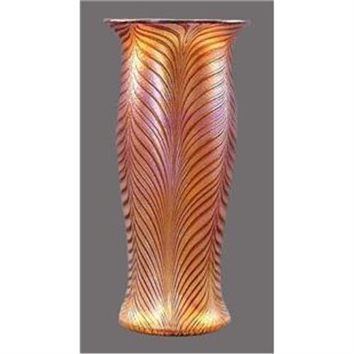 CZECH BOHEMIAN AMETHYST COLORED GLASS + GOLD TONE IRIDIZED ART GLASS VASE<p> Available for purchase is an ABSOLUTELY STUNNING Art Glass Vase. This Loetz inspired Vase was hand made in the Bohemian region of the Czech Republic from the finest quality mouth blown Glass. It is from a collection of very select pieces made by the Stepanek Studio and is Artist engrave signed ?VS/07? for the artists initials and year it was made. It features the ?Stepanek Studio? gold foil label to guarantee its authenticity and comes in its original satin lined gift box. </p><p>This Vase stands 8 3/4? tall and 4? across its widest and has a smooth finished, unground Pontil. It is comprised of a base color, as viewed from inside the Vase, of Amethyst colored Glass alternating with Gold tones. The exterior of the Vase has fine ?feather-like threads? ranging in color from the Amethyst & Gold colord Glass flared rim to an Iced Purplish-Blue alternating with a Bronzish-Gold tone all in a ?pulled feather? effect. </p><p>This Vase is in EXCELLENT condition with absolutely NO DAMAGE!! It truly rivals the quality and artistry of the famous Art Glass maker Loetz. Photos do not capture the QUALITY or BEAUTY of this HIGHLY IMPRESSIVE piece .... we GUARANTEE you will not be disappointed!! This Vase can do nothing other than make an AWESOME addition to any Art Glass collection ?. DON?T MISS OUT!!! #71123