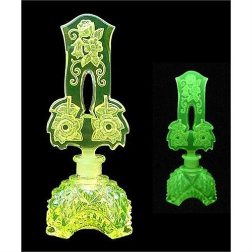 CZECH VASELINE PERFUME BOTTLE W/FLORAL PIERCED INTAGLIO STOPPER <p>Available for purchase is an absolutely AWESOME Czech Perfume Bottle. This STUNNING Perfume Bottle was made in the Bohemian Region of the Czech Republic by Jaroslav Pesnicak. The HIGHLY facet cut & polished base was made from the finest quality YELLOW Vaseline Glass and is artist acid etch signed ?Pesnicak?. The matching Vaseline Stopper is Intaglio cut with a lovely Floral Décor and is pierced in the center in a keyhole shape. </p><p>This LOVELY Perfume Bottle measures 5 5/8? tall (including stopper) & 2 1/2? across its widest and fluoresces STUNNINGLY under blacklight due to the Uranium content in the glass. Both the Bottle & Stopper are in EXCELLENT condition with absolutely NO DAMAGE!! Although this exact Bottle is not pictured, similar examples can be found in the well known and highly accredited Book ?Czechoslovakian Perfume Bottles & Boudoir Accessories, Revised Edition?. Most notable is the current value listed in the Book?s Price Guide for comparable Bottles with the Vintage Predecessors commanding in excess of $400. This Perfume Bottle is SURE to make an AMAZING addition to any Perfume Bottle or Vaseline Collection ... DON?T MISS OUT!! #124123