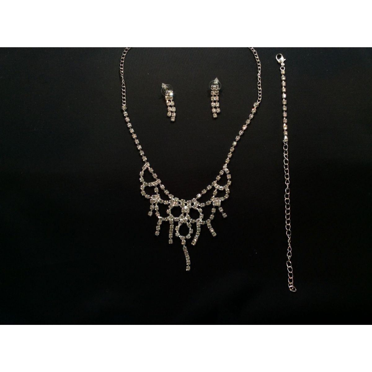 Perfect for a multitude of formal occasions from weddings to formal dances or events, this rhinestone crystal set is sure to dazzle. Complete with matching earrings and bracelet to complement the stunning necklace, this set comes presented in a beautiful jewelry box for safekeeping.
