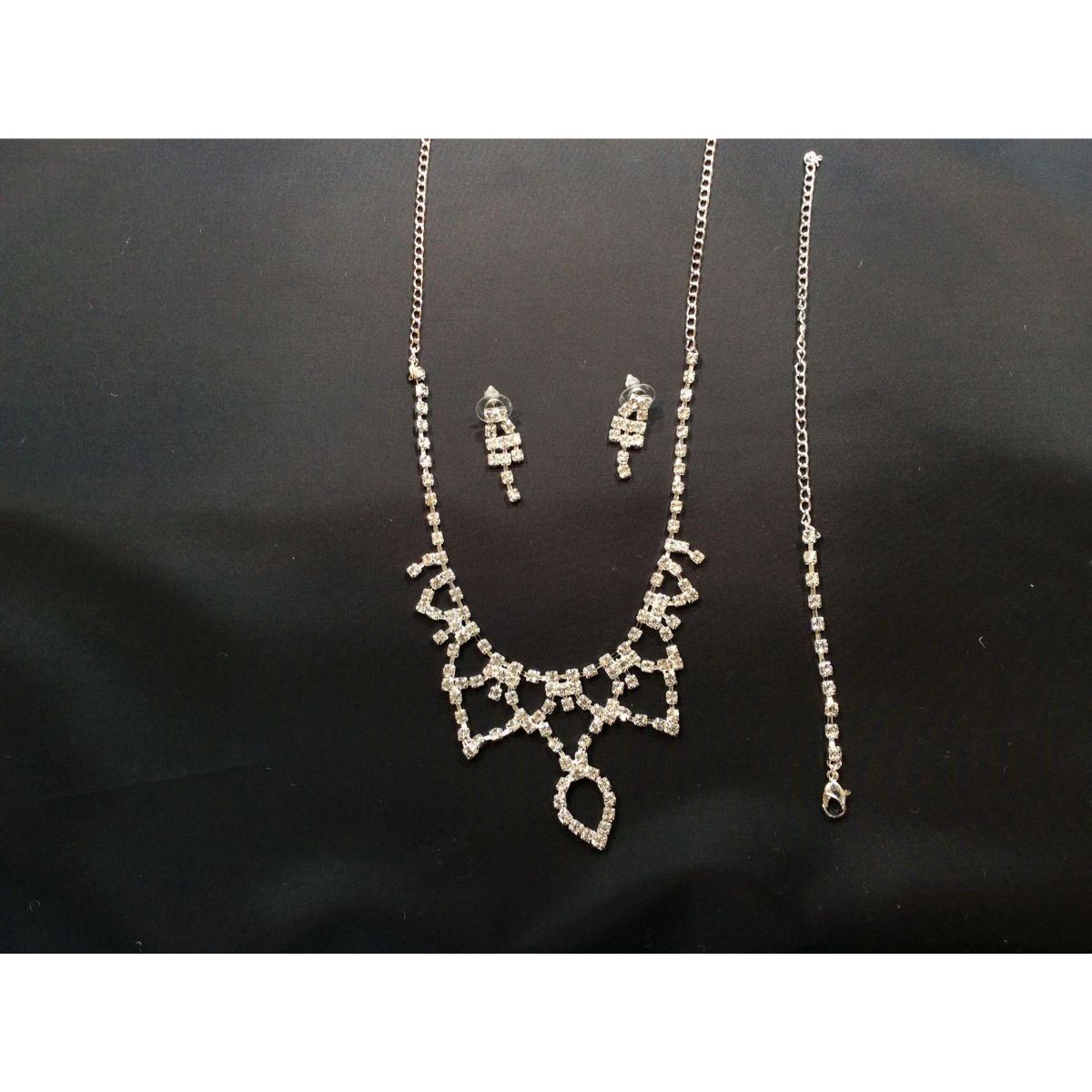 Perfect for a multitude of formal occasions from weddings to formal dances or events, this rhinestone crystal set is sure to dazzle. Complete with matching earrings and bracelet to complement the stunning necklace, this set comes presented in a beautiful jewelry box for safekeeping.