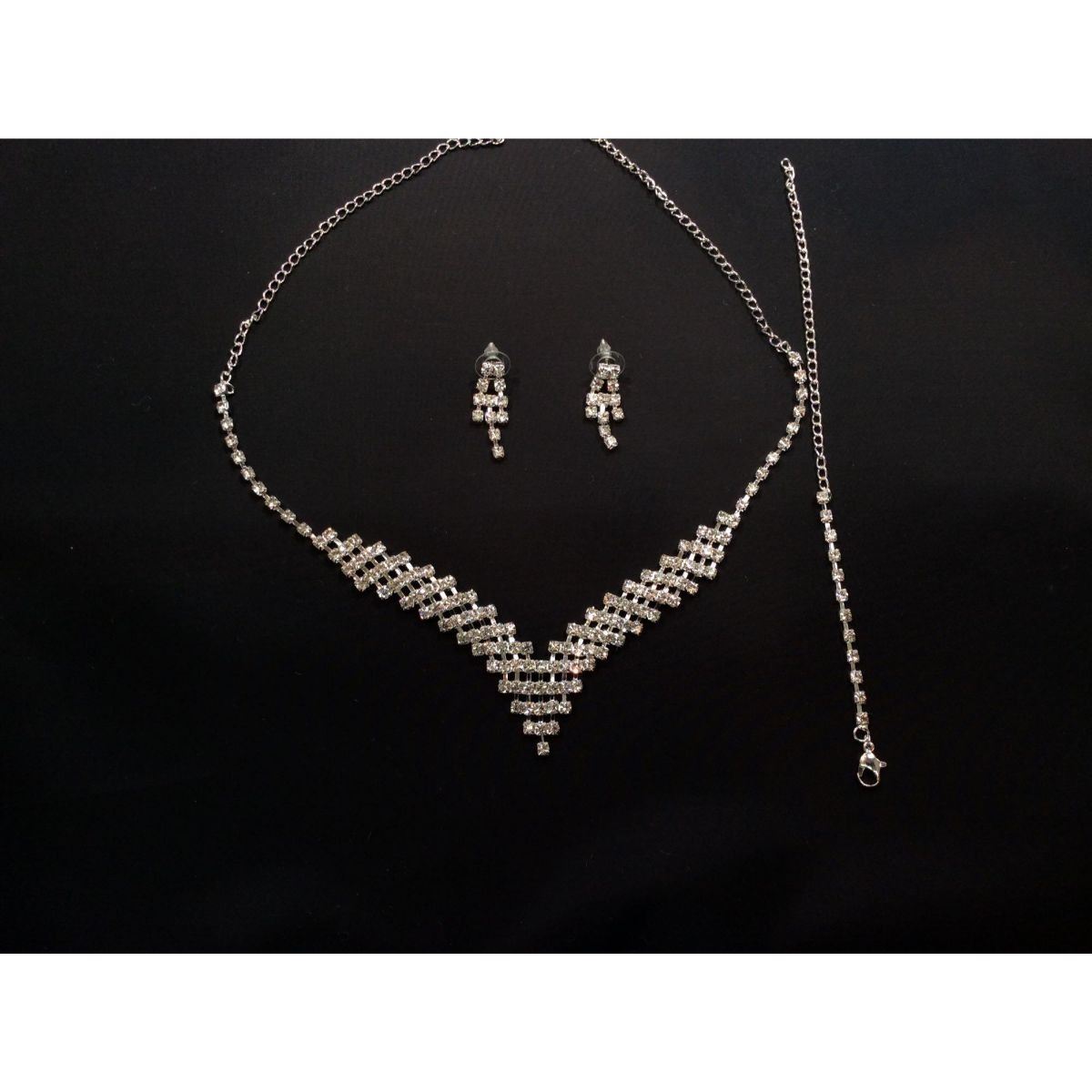 Perfect for a multitude of formal occasions from weddings to formal dances or events, this rhinestone crystal set is sure to dazzle. Complete with matching earrings and bracelet to complement the stunning necklace, this set comes presented in a beautiful jewelry box for safekeeping.