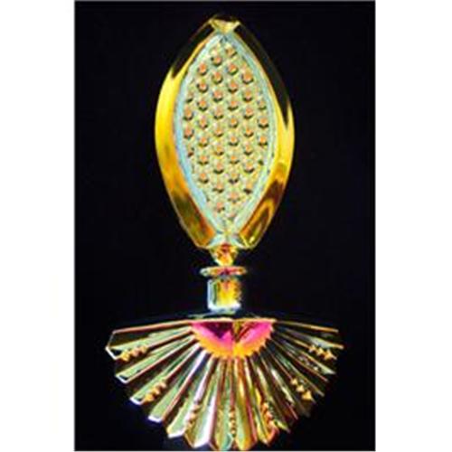 <table width="100%" border="0" cellspacing="0" cellpadding="4"><tr><td><em> </em></td></tr><tr> <td width="100%"> This gorgeous Czech metallic iridescent geometric Art Deco fan perfume bottle, with a tall oval shaped stopper, is from a special edition that was produced during the 1950's. The sticker on the bottom reads Bohemia Crystal - Made in Czechoslovakia. Measuring 6 1/2" tall the bottle and its stopper are both in excellent condition </td></tr><tr> <td> </td></tr><tr> <td>Reference #: aaCMIGPB9</td></tr><tr><td>Condition:Excellent</td></tr><tr><td>Year:1950s</td></tr><tr><td>Title:Czech Metallic Iridescent Glass Perfume Bottle</td></tr><tr><td>Location:Orlando, Florida</td></tr></table>