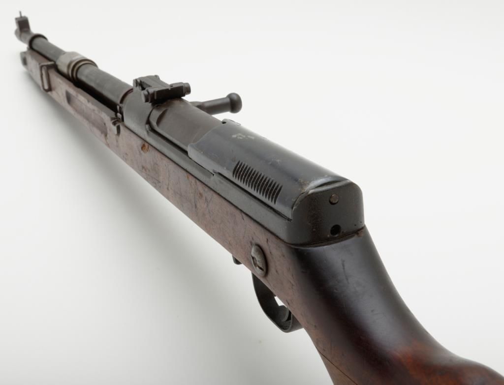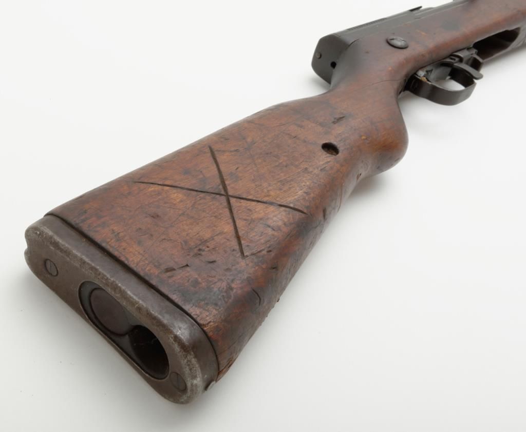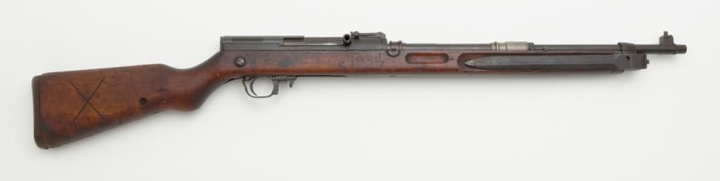Czech Model 52 semi-auto short rifle, 7.62mm cal., 20” barrel, military finish, folding bayonet, wood stock (missing top hand guard section), no magazine, #E 09276 in overall un-cleaned fair + condition with good action, dark bore, darkpatina, fair to good wood main stock; part of butt plate missing; needs cleaning and some work as indicated; import-marked. (C&R/PPT). Est.: $150-$300.