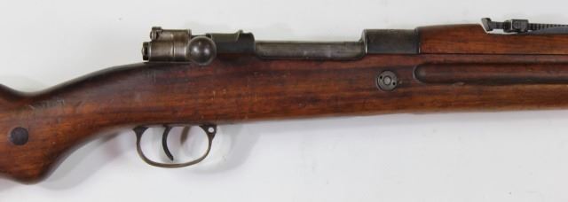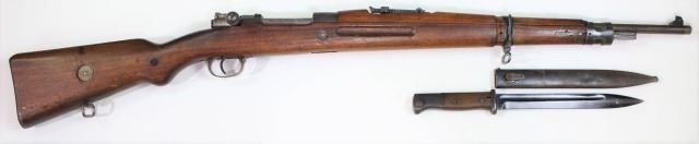 bolt action military rifle with bayonet, numbers  matching on receiver, bolt with 24" barrel,  remains in overall good, action tight and poor  bore. Modern.  Est. 350-500